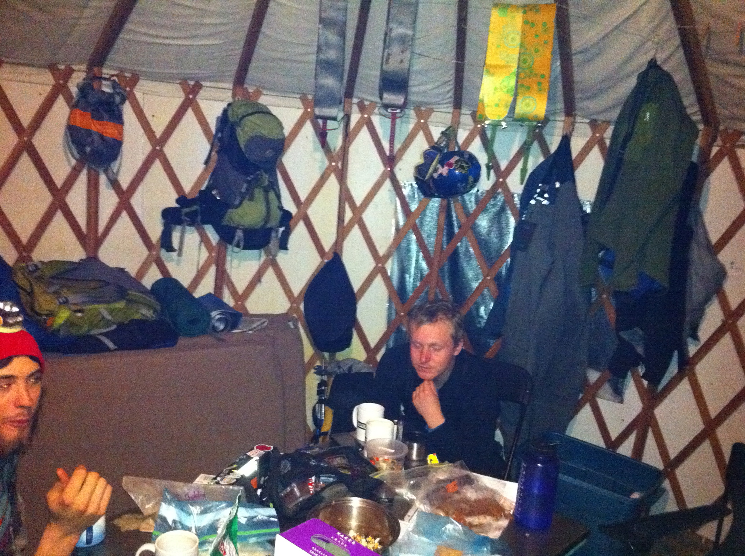 The yurt is well equipped with a propane stove and lantern, kitchen supplies, sleeping mats and a small Jotul stove to keep it toasty and melt off the snowpack burden the yurt had accumulated since its last visit.