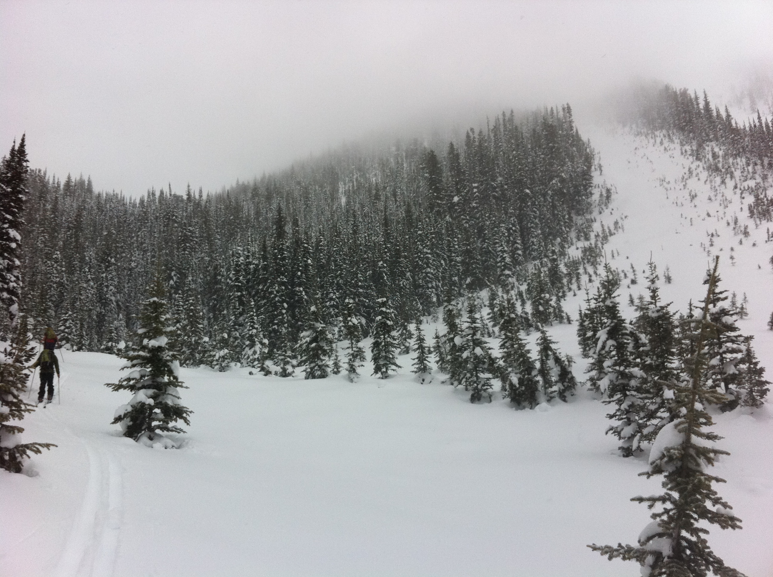 We heard word of a yurt on Mt. Patrick in the Purcells behind Kimberley that had some good touring terrain. At 1900m the yurt looked like a perfect place to head up and out of the warm weather the other week.