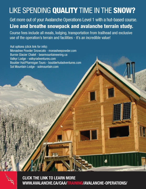As winter fast approaches there are some spots available on many of the CAC’s hut-based Avalanche Operations Level 1 courses. The Avalanche Skills Training Level 1 Course will provide an entry-level decision-making framework that is based on the most advanced knowledge available. It is suitable for use by people with basic training and little experience.