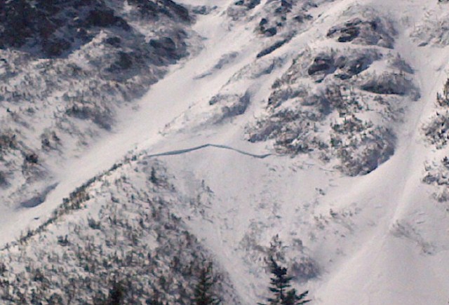 3. On March 1st, 2 skiers entered the top of the Lobster Claw. The first entered familiar terrain on relatively firm hard slab. The second skier entered making more impact on the slope, due to technique, triggering the slab. The first skier was carried a short distance from his stationary position. The avalanche entrained more snow as it descended running full path. The avalanche danger was posted as Moderate.