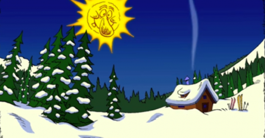 It is a fun skiing slideshow combined with animation and drawings with suggestions to close your yes kids!.