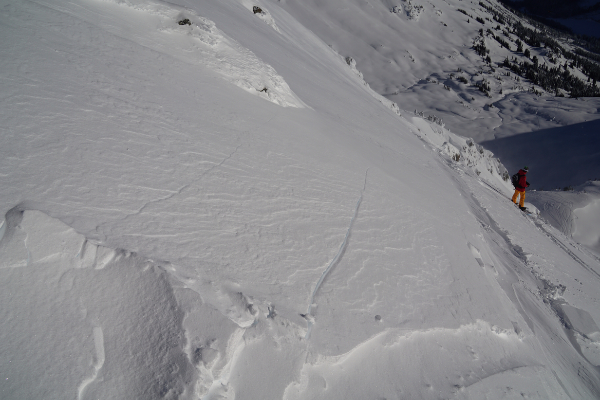 That all changed on December 29, 2014. I was helping an old acquaintance, who was working with a Russian snowboard magazine, showing the eight person crew some of the local terrain. We were using an A Star [helicopter] to access some terrain in the Pemberton Valley. The afternoon had been going well: I had already ski cut several small stiff wind slabs, and we were enjoying some fairly nice turns. The group consisted of advanced riders, and the idea was to expand into some steeper terrain.