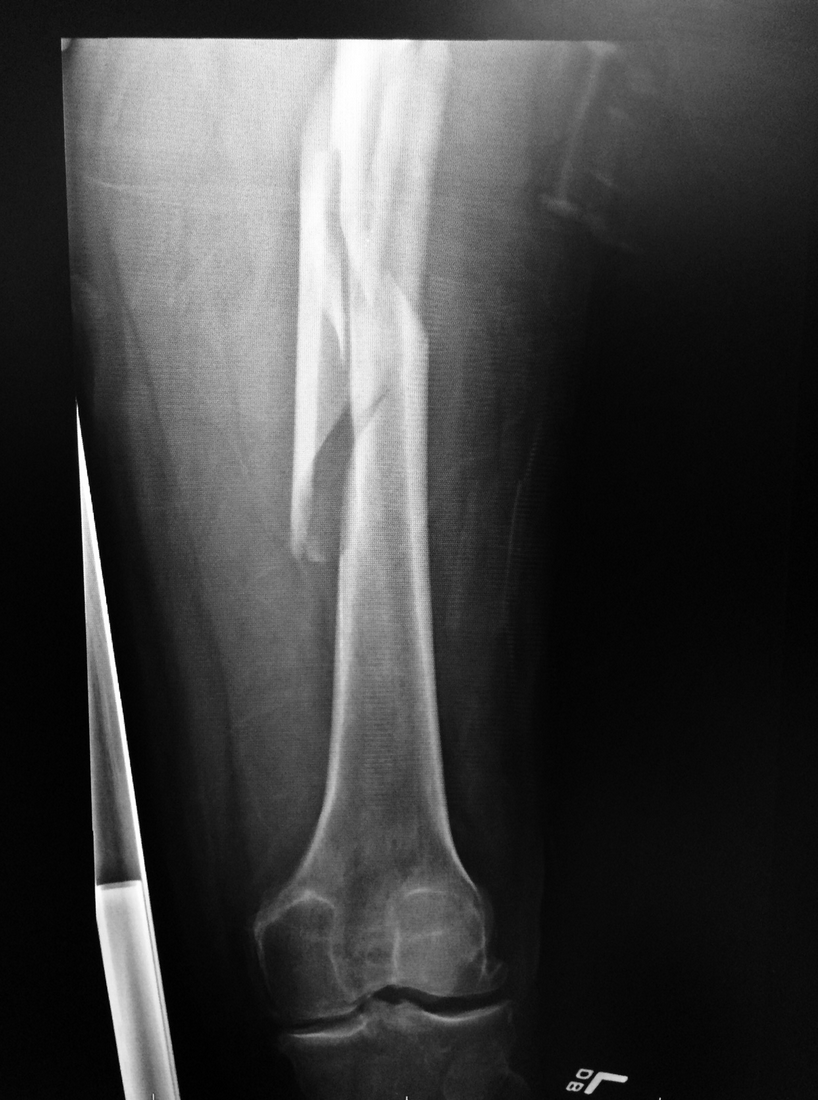 I planned a ski cut, which would lead me to a safe location, with the rest of the group in a safe area. However, halfway across the slope, I skied into some softer snow and struck a rock, which momentarily put me off balance. Before I knew it, I was headed downhill in a fast-moving stiff slab. I veered off to the right, watching my tips reach solid snow, but within a few seconds, the tails of my skis were grabbed by the rushing torrent and I was turned 360 degrees in the air. During these brief seconds, I felt my left femur spiral and fracture.