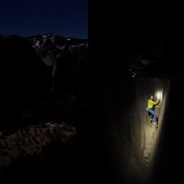 Let’s stop talking about ME, Jon Turk. Instead, let’s look at the single most relevant, amazing, hair raising event going on in the outdoor adventure world today. Tommy Caldwell and Kevin Jorgeson are, right now, as we speak, living on a porta-ledge on El Capitan in Yosemite Park, attempting what is generally considered to be the hardest rock climb in the world, to free climb the vertical, crack-less, near-featureless Dawn Wall. Several pitches of 5.14+, loads of 5.13 and “easy”, 5.12. If you don’t know what that means, look at the photos. According to the latest news, from Caldwell’s facebook page, posted on Jan 7 at 2.53 AM: