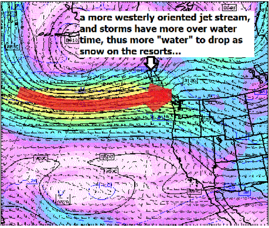 Afterward, we should start to see increasingly moist and strong storms move in from off the Pacific (we have not seen this in months), for more heavy and dense snowfall for the latter half of March (see image 2 for an example of the pattern more likely in later March). This will be a big improvement from the sun and mild weather under high pressure ridging for sure!”