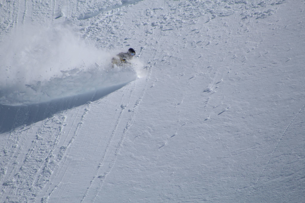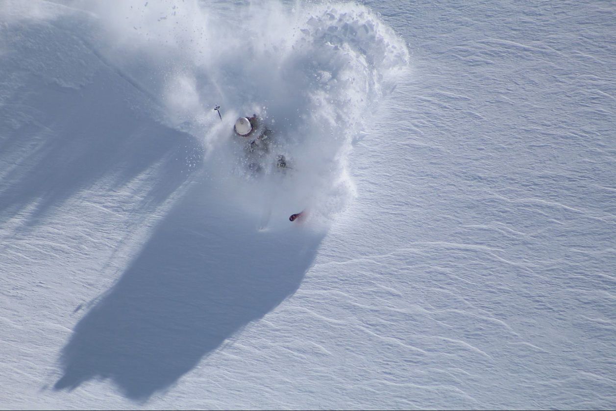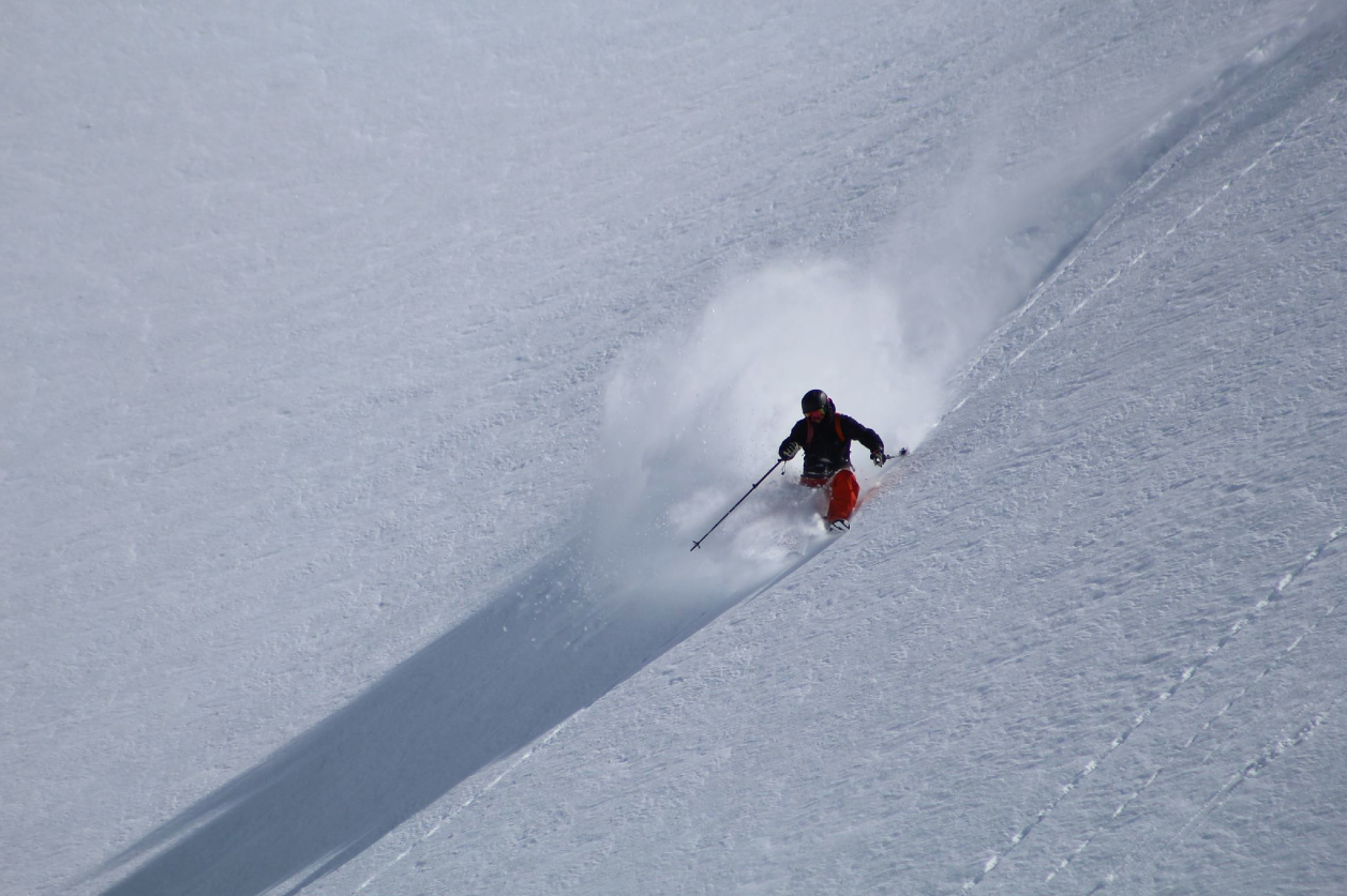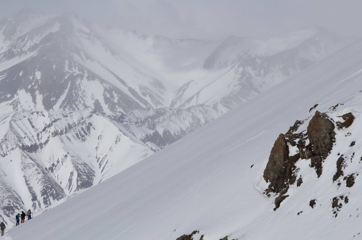 Dean Cummings, owner of H20 Guides, experiences an extra-tropical cyclone laying down awesome powder on his groups last day in the Andes.