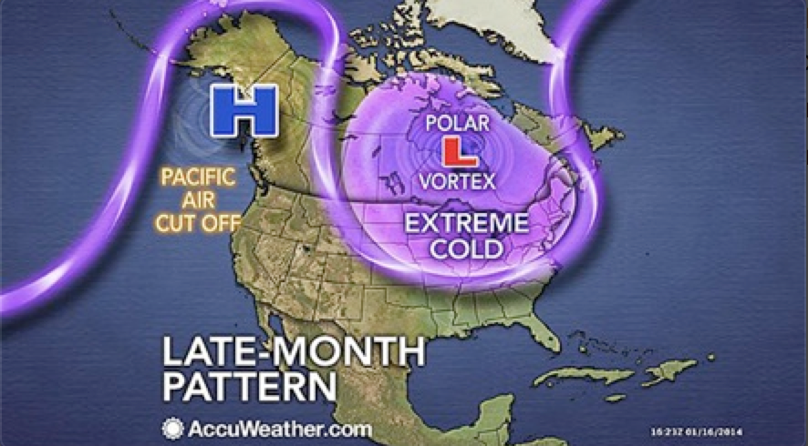 Above: Typical pattern of the Polar Vortex which has kept the province of British Columbia Substantially warmer and drier for the past two winter seasons.