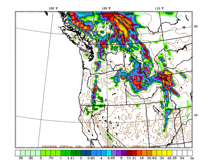 Here is the weekends forecast showing several feet in the Rockies and in the higher elevations of the BC interior ranges.