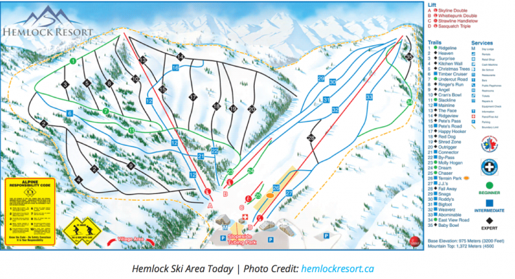 “The way these areas are physically tied together makes the development very feasable. It also enables the creation of facilities that will cater to sense of exploring, adventure and escape, different than the “yo-yo” skiing found at so many other ski areas.”– Hemlock Master Plan (2010)