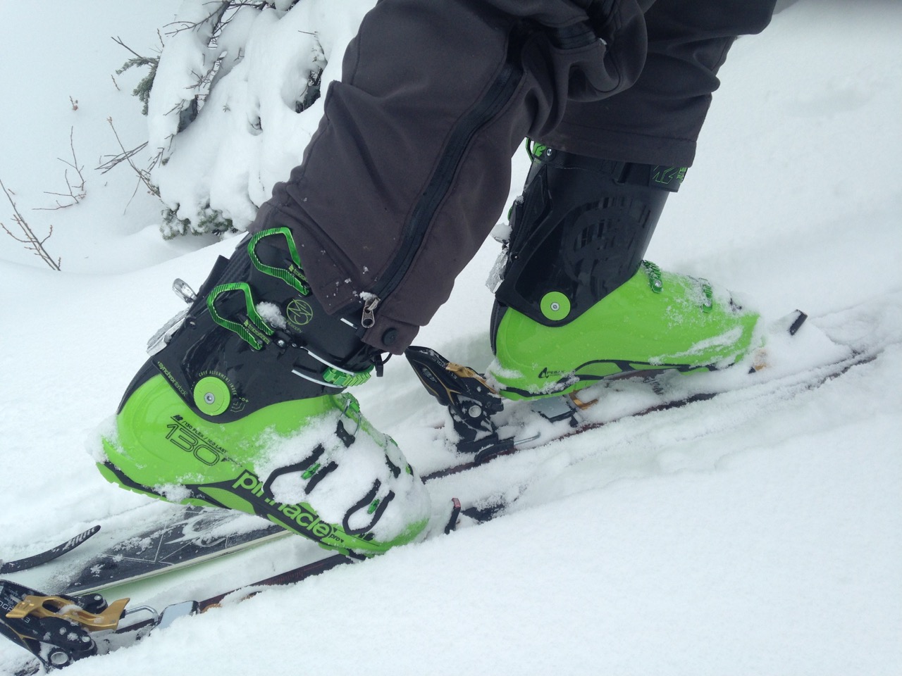 Functionally the Pinnacle Pro works. The well designed hike-mode mechanism on the spine is solid and easy to control with a ski-pole handle. The range of walk-flex is effective and comfortable allowing me to easily drive my vehicle. The boot comes with ski din soles and has an optional Vibram sole upgrade that offers efficient boot-packing or traversing on rocky terrain. I have upgraded to the full Vibram Teck sole for pin bindings however as a slack-country or ski-hill boot, the stock sole is a good choice. The tech fittings however are compatible with just about every binding available. And a forth buckle has been added to the cuff for added performance. It’s sized with a 100mm forefoot and has relaxed fit through the midfoot and heel.