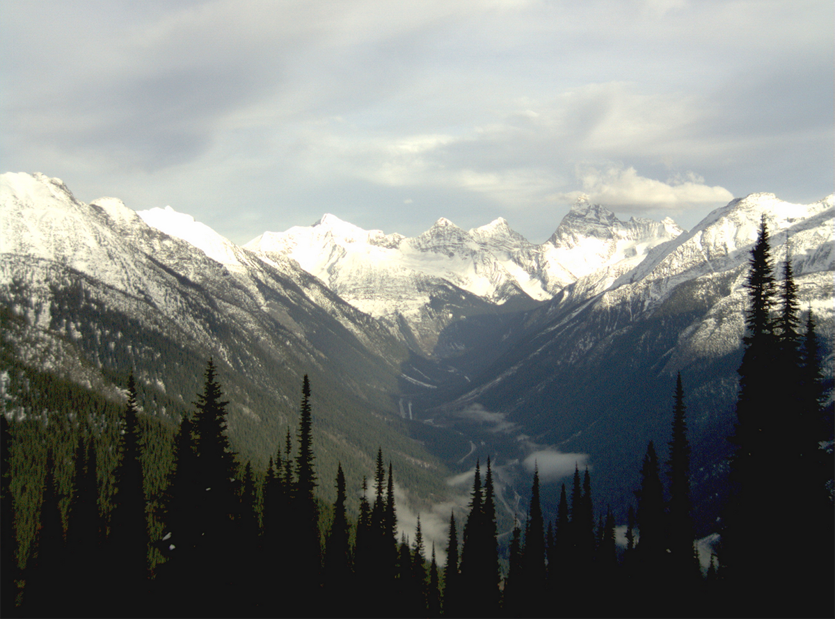 The following weather cam image is transmitted by a remote camera looking east towards Rogers Pass from the west end of Glacier National Park. The image updates every half hour, at 20 and 50 minutes past the hour. Click here for your live feed.