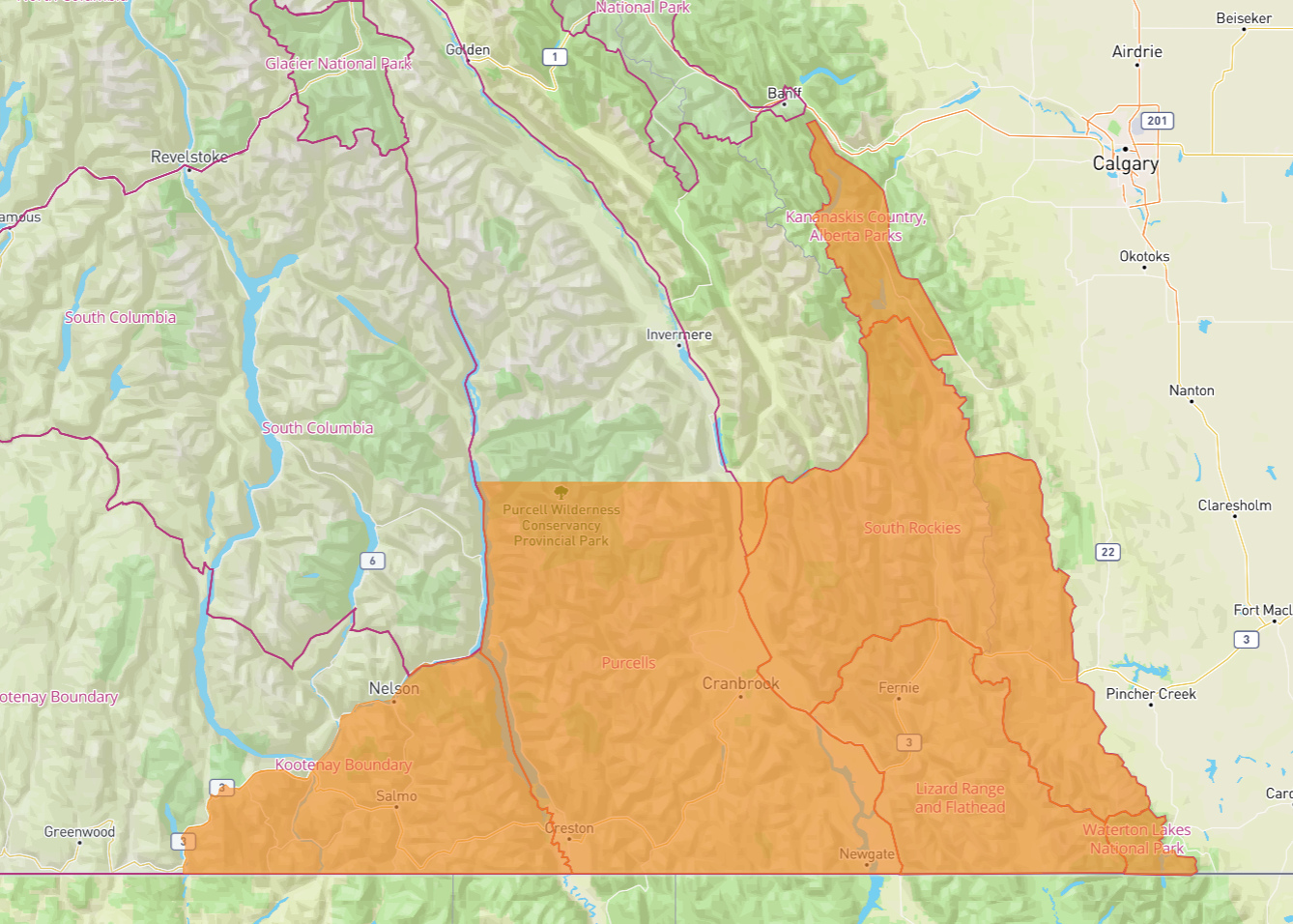 Avalanche Canada has issued a special public avalanche warning for recreational backcountry users for Friday, February 10th to Monday, February 13th. The areas affected include: Kananaskis Country and Waterton Lakes National Park, and Avalanche Canada’s South Rockies and Lizard and Flathead regions. The southern part of the Purcells region and the eastern part of the Kootenay Boundary region are also included. Here is the map of the affected locations.