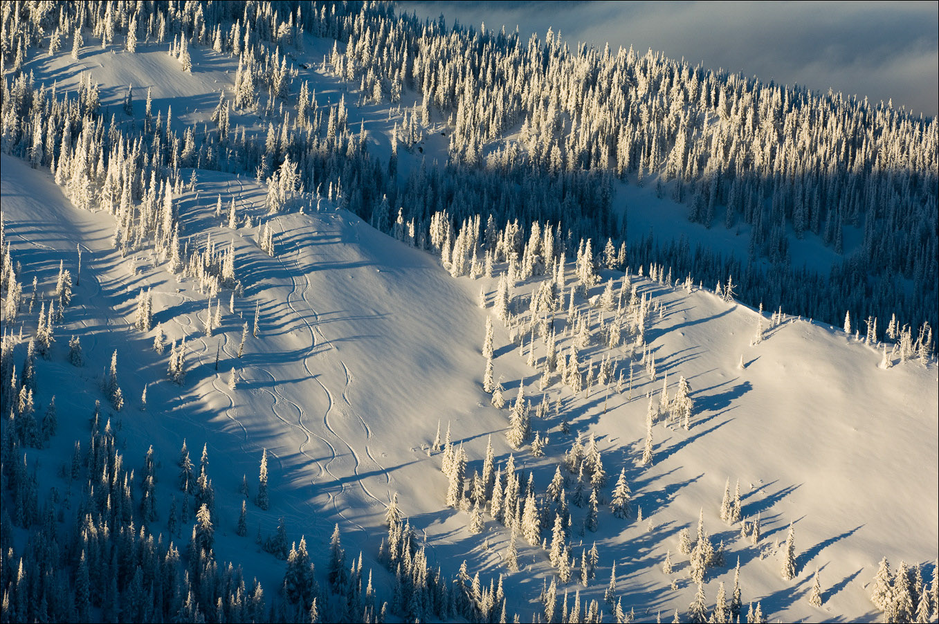 Early December can deliver the best powder skiing of the season. The shortest days of the year keep the powder the driest and with kids’ still in school and city-folk with busy work schedules, the crowds are small–except for opening days. Opening days at powder resorts can be crazy busy however the the following Monday and through to Christmas, the lifts are empty.