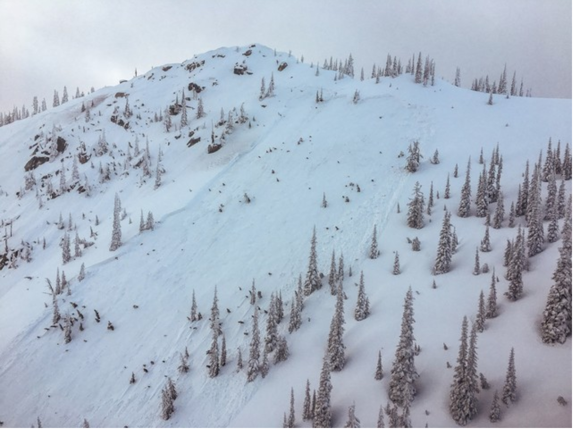 A recent persistent slab avalanche from Kootenay Pass. This failed at treeline on the December surface hoar.