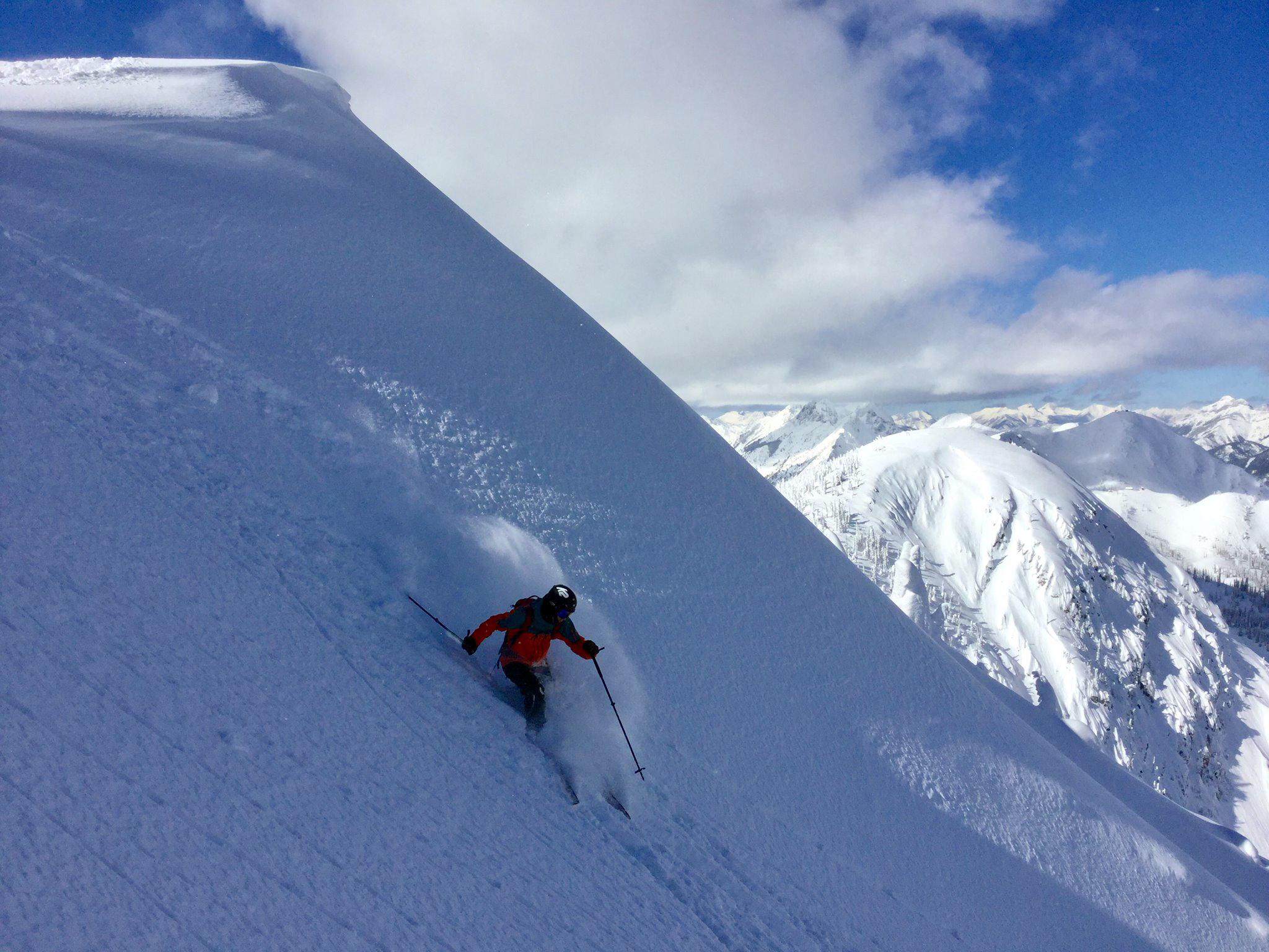 By Caleb Brown, skiing at Fernie Wilderness Adventures below