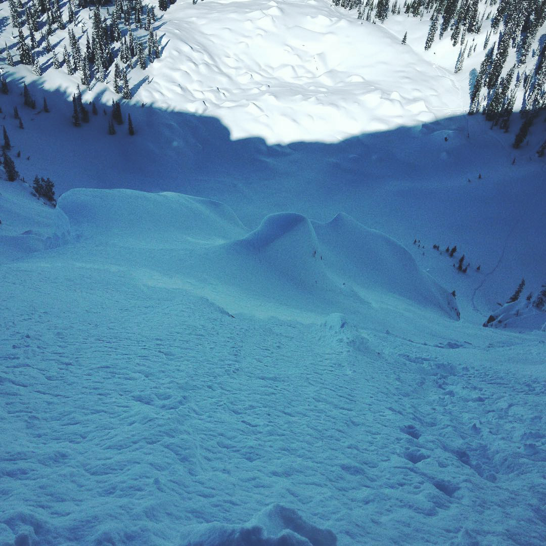 dropped in, skiing fast, just avoiding my sluff at the bottom. One of my favourite missions to date.
