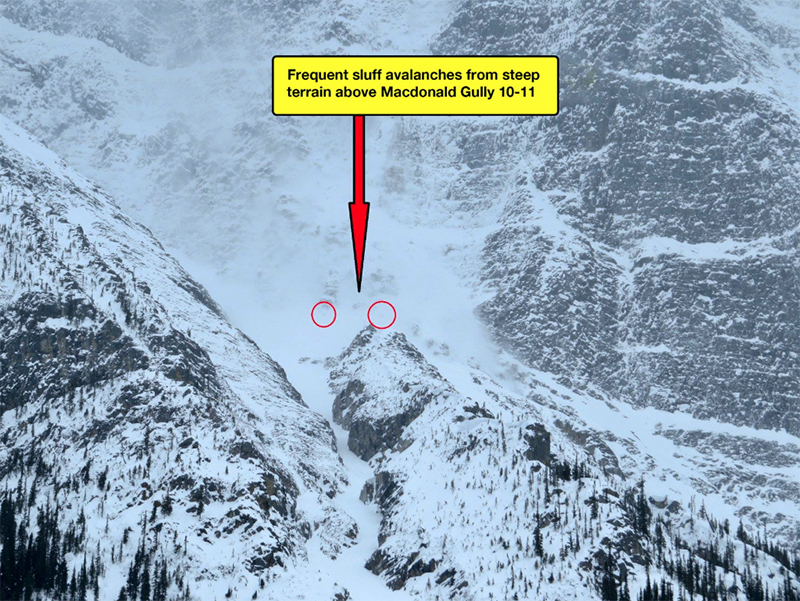 Couloirs are risky business in Rogers Pass. Before climbing or skiing, ask yourself, “How often does this feature avalanche?” Single Bench averages 72 avalanches a year, Lens averages 60, Macdonald Gully 10 averages 41, and Lone Pine averages 27. This doesn’t include smaller sluffs which are big enough to knock a person off their feet; avalanche numbers would be at least double if these were counted.