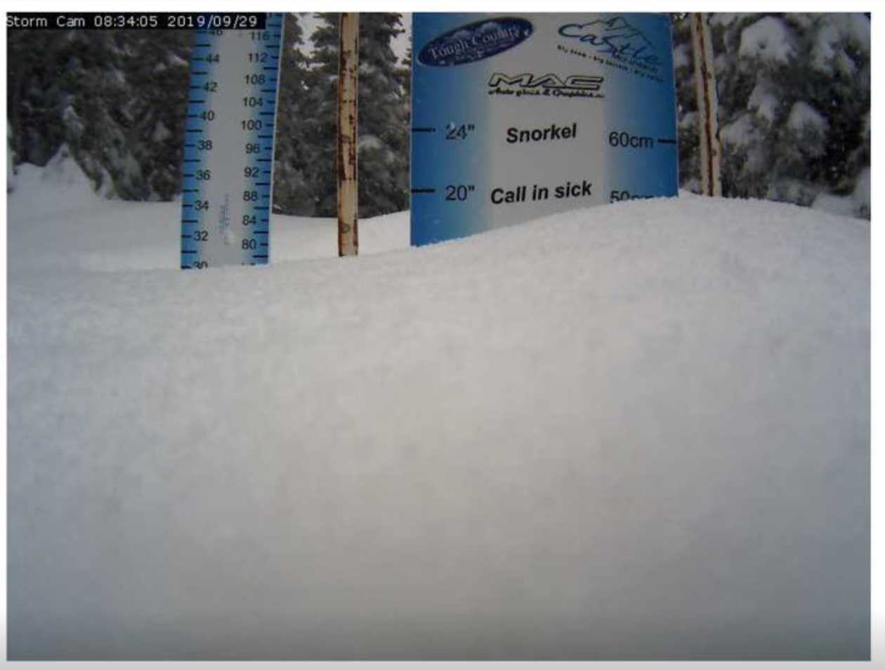 I know it’s hard to believe for September, but yes, Castle Mountain received 80+cms of snow this weekend. Are people skiing? Yes indeed, they are skiing thigh deep light powder!