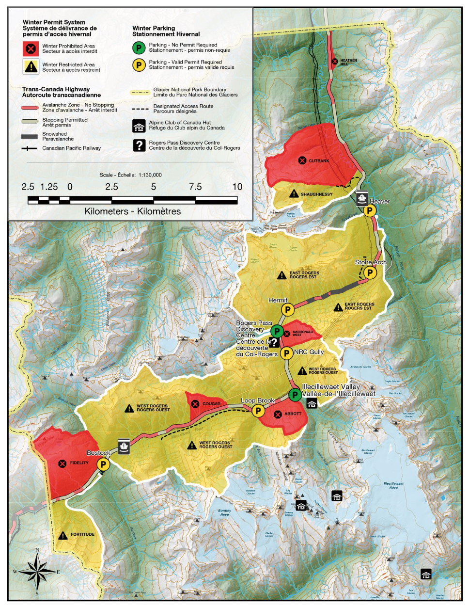 Large areas of Glacier National Park were closed for avalanche control using explosives. Daily or annual winter permits are required to access the winter restricted areas. Access information is available at the Rogers Pass Discovery Centre.
